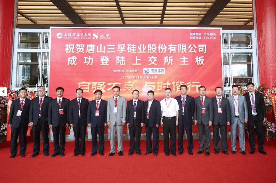 2017年6月28日,唐山三孚硅業股份有限公司首次公開發行股票(股票簡稱:三孚股份,股票代碼:603938)掛牌上市儀式在上海證券交易所隆重舉行!